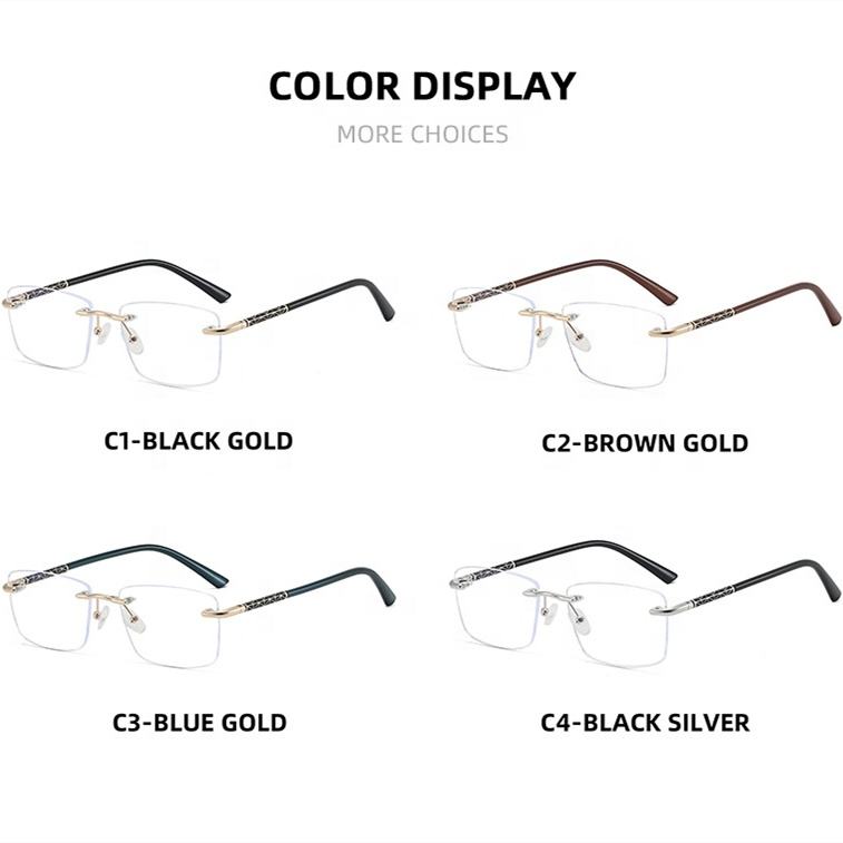 Qingqing Lunettes sans monture rectangulaires en alliage anti‑lumière bleue rétro bleu‑or modèle 2026 homme, fabricant Chine
