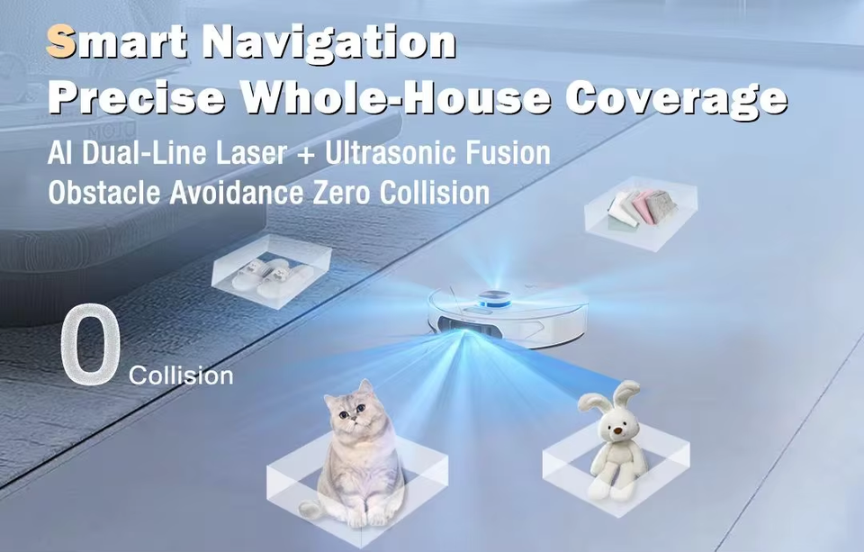 Caractéristique:Nettoyage automatique, Auto-recharge, Écologique, Nettoyage des bords, Cheveux d'animaux ramassés, Navigation chambre par chambre, Programmation, Lavage sonique, Filtre lavable