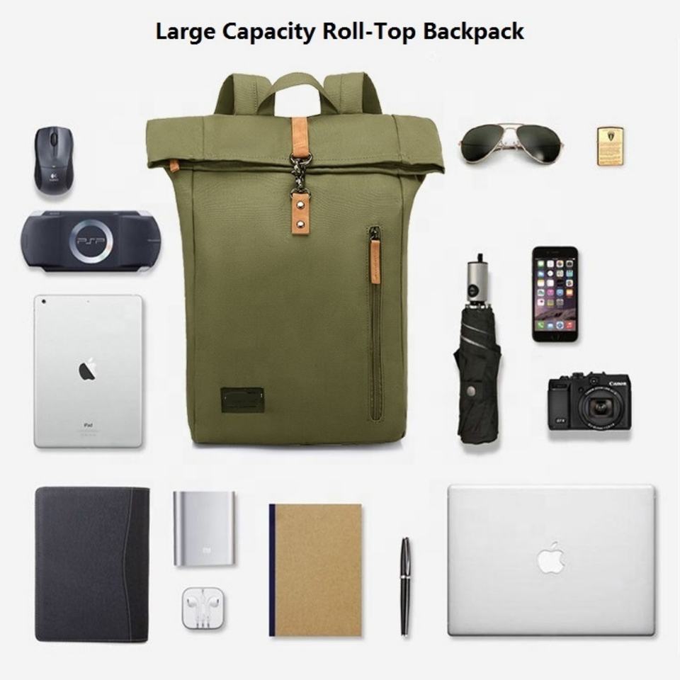 Sac à dos en toile de haute qualité à fermeture roll-top, imperméable, avec logo personnalisé, sac à dos de loisirs, sac à dos pour ordinateur portable tendance OEM