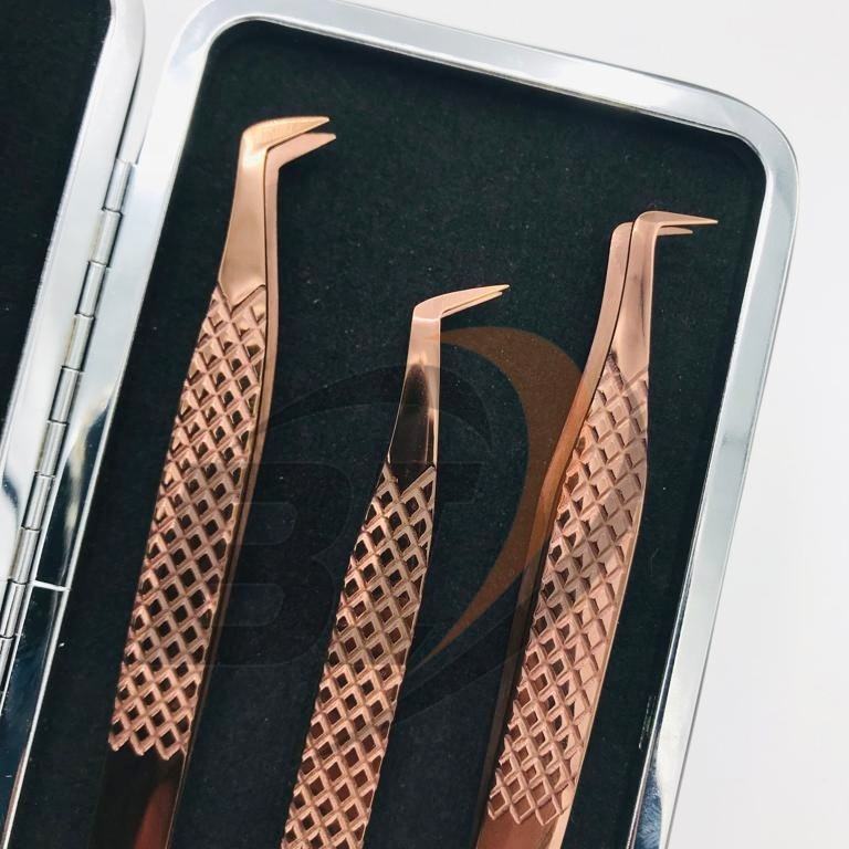 High Quality Rose Gold Diamond Grip Eyelash Extension Tweezers Sustainable Professional Volume Professional Lash Extension