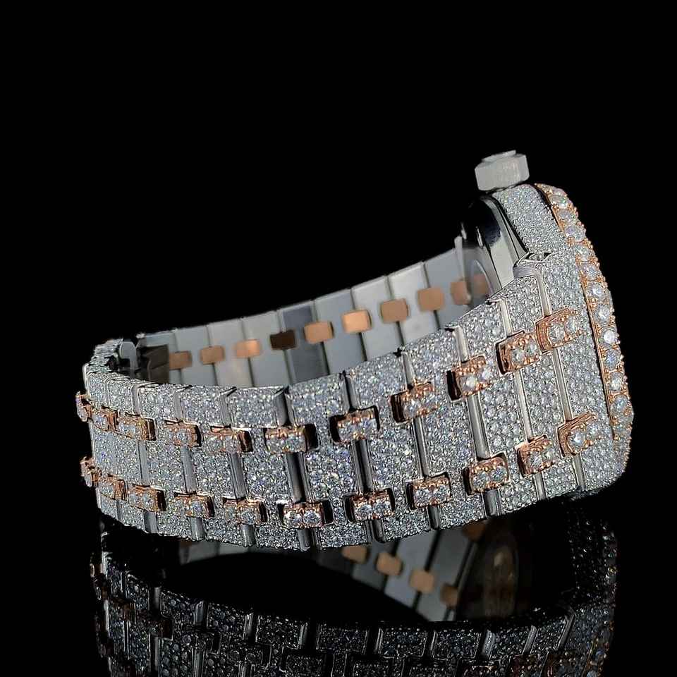 Cadran rond de haute qualité personnalisé fabriqué à la main de luxe Moissanite automatique deux tons suisse ETA automatique Hiphop montre montre