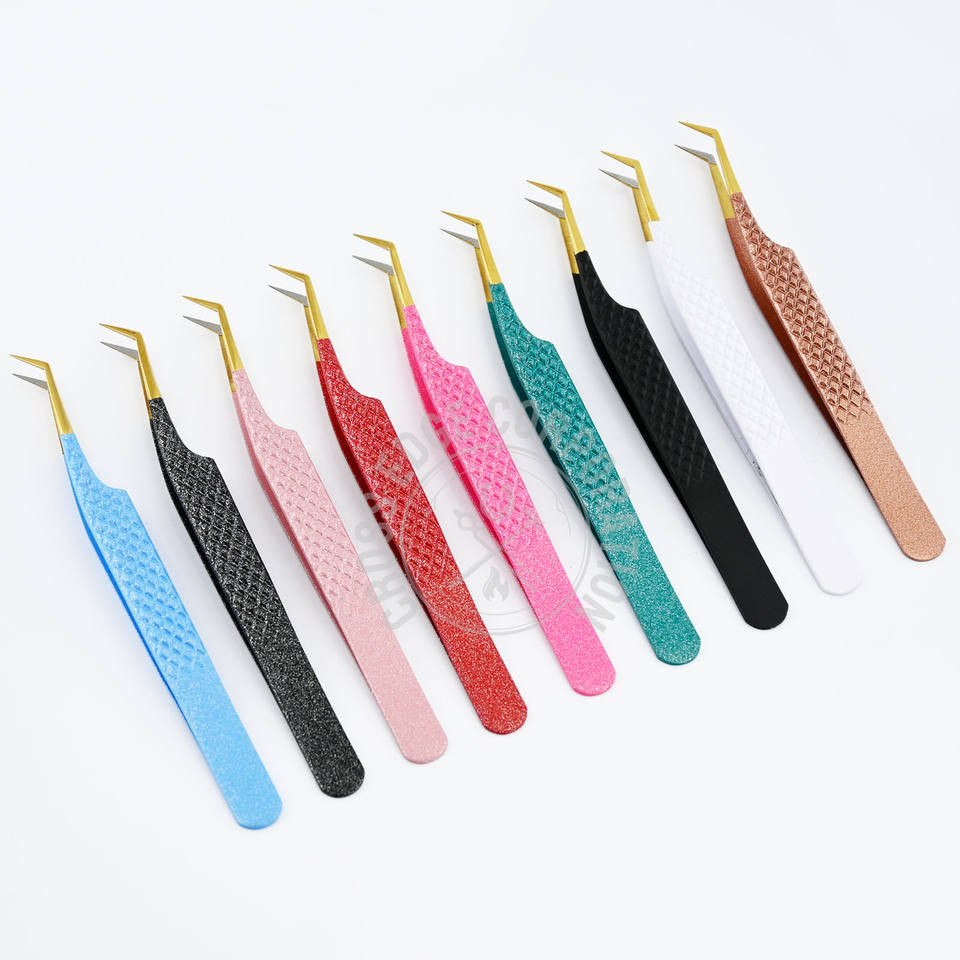 Pince à épiler professionnelle pour extensions de cils volume russe, pointe 45, en fibre, antidérapante, testée à la main, scintillante