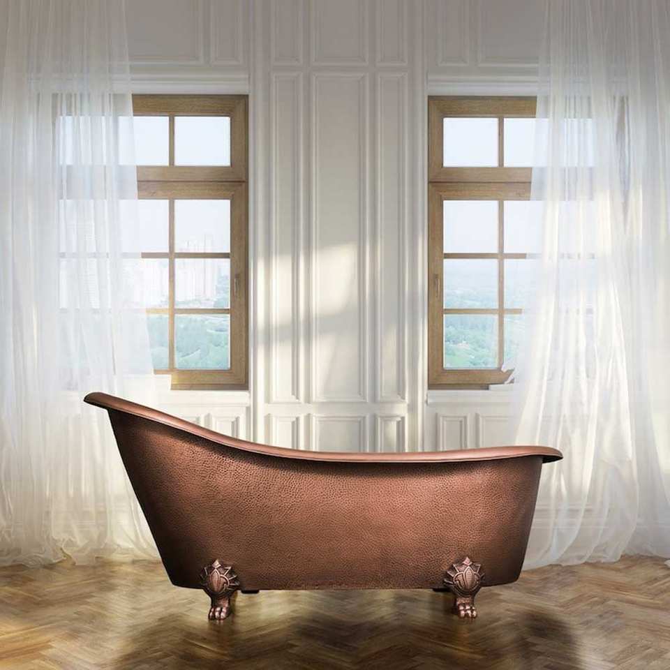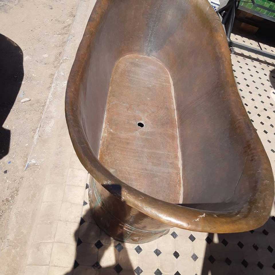 Baignoire autoportante en cuivre rustique de haute qualité Nouveau design Mini Cooper Baignoire fabriquée en Inde Type d'installation de trempage