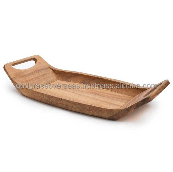 High Quality Rustic Wood Tray Set of 3 Torched Nesting Hand Carved Set White Flowers Wooden Serving Tray for Kitchen