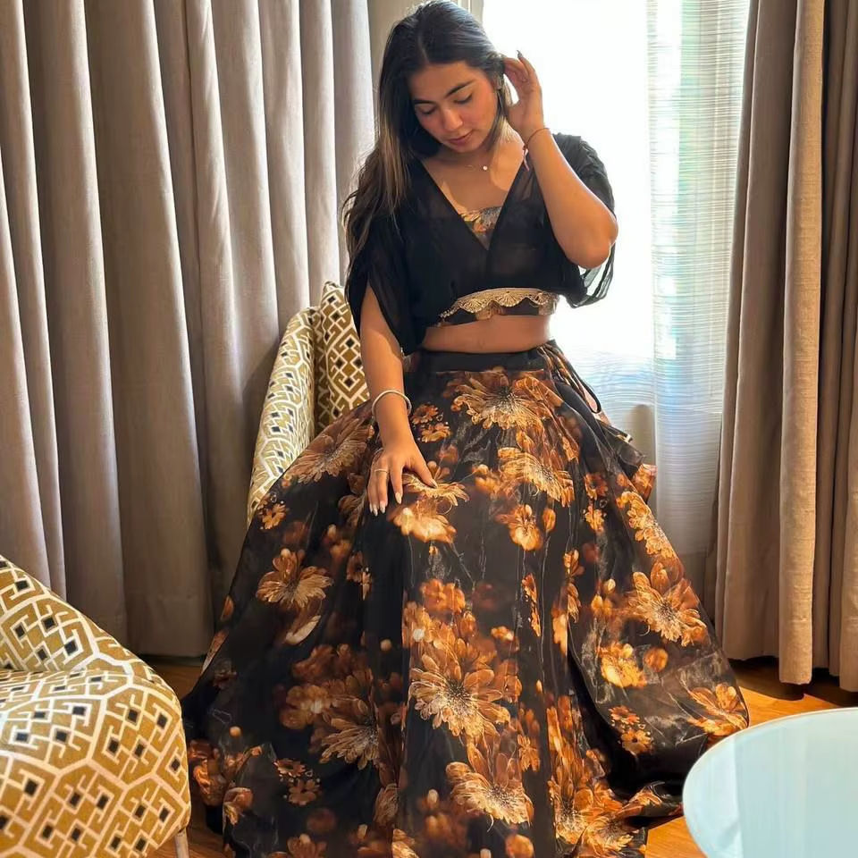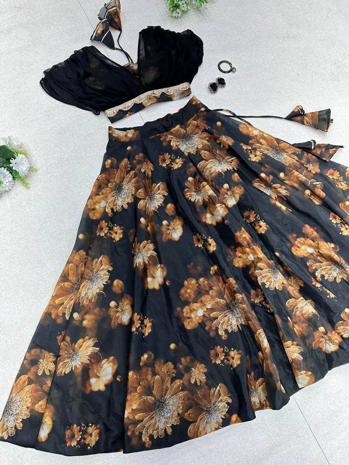 Lehenga Choli en Soie Organza Noire de Haute Qualité SHIV FASHION, Style Bollywood, Longueur au Sol, Séchage Rapide, Imprimé Numérique, Style Indien Occidental