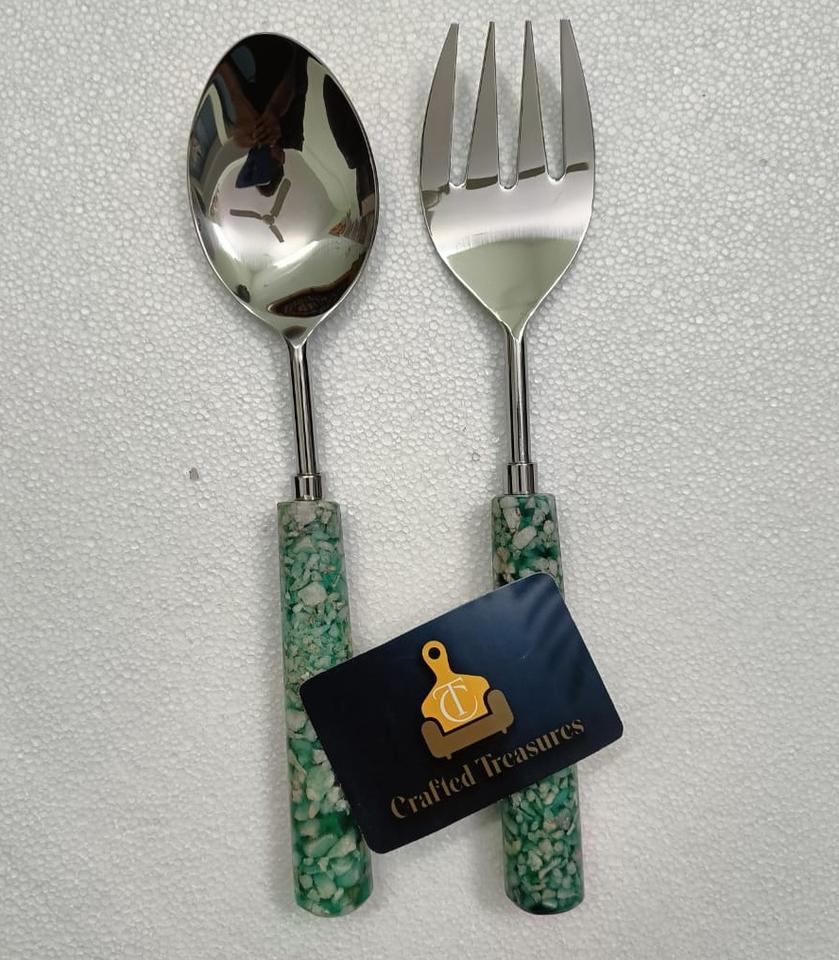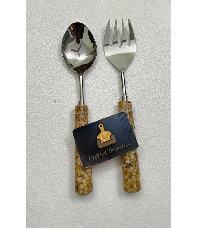 Ensemble de cuillères et fourchettes à salade de haute qualité en résine époxy avec pierre incrustée, ustensiles de cuisine au meilleur prix