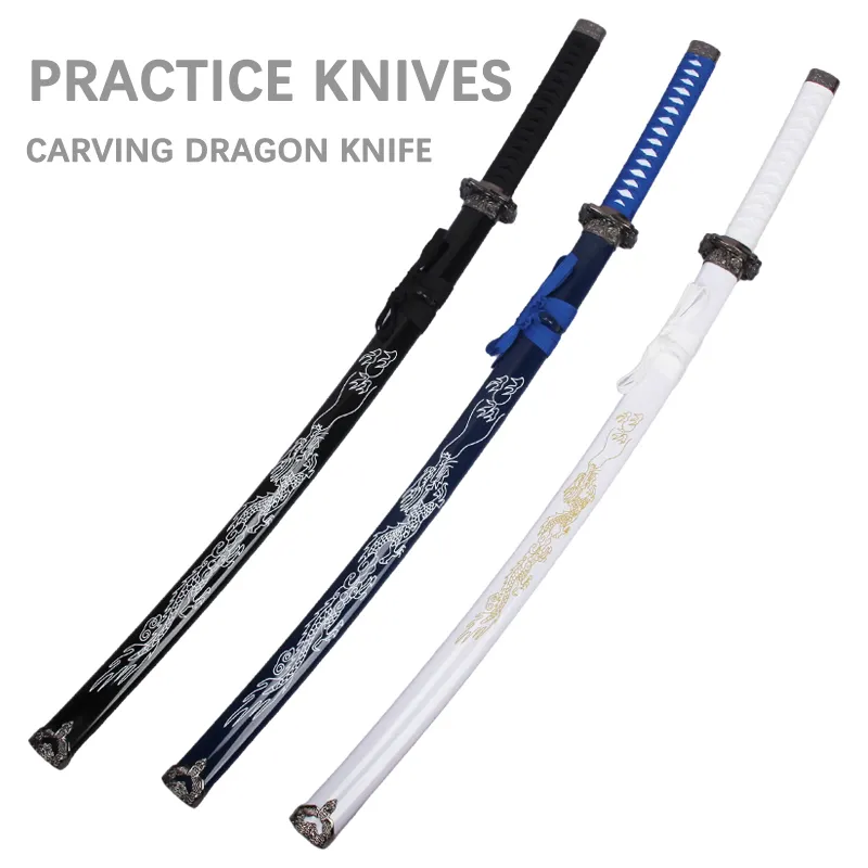 Haute qualité samouraï épée étoile gravée dragon chevalier noir blanc bleu gravé Kidults jouet Katana épées pour Cosplay Play Boy