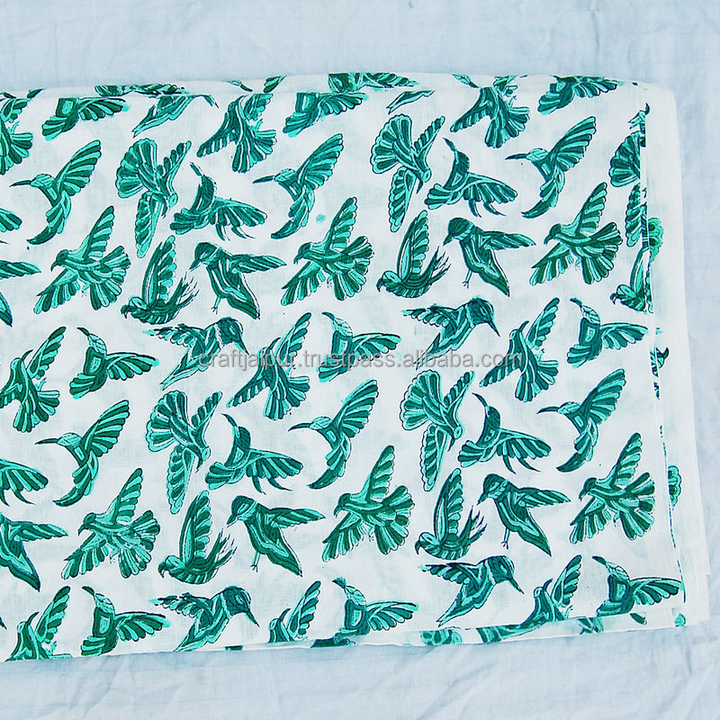 Haute qualité Sanganeri oiseau-bloc imprimé coton robe tissu doux artisanat fait à la main matériel pour garçons décor à la maison revêtements
