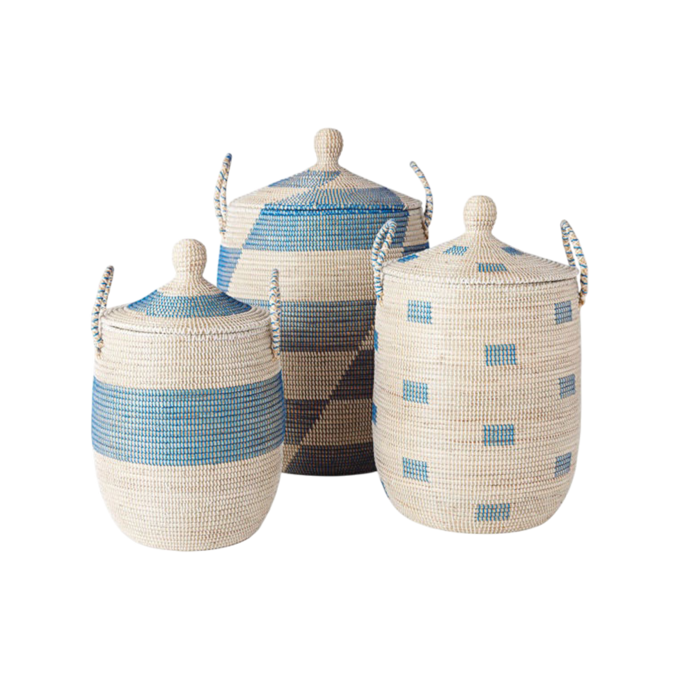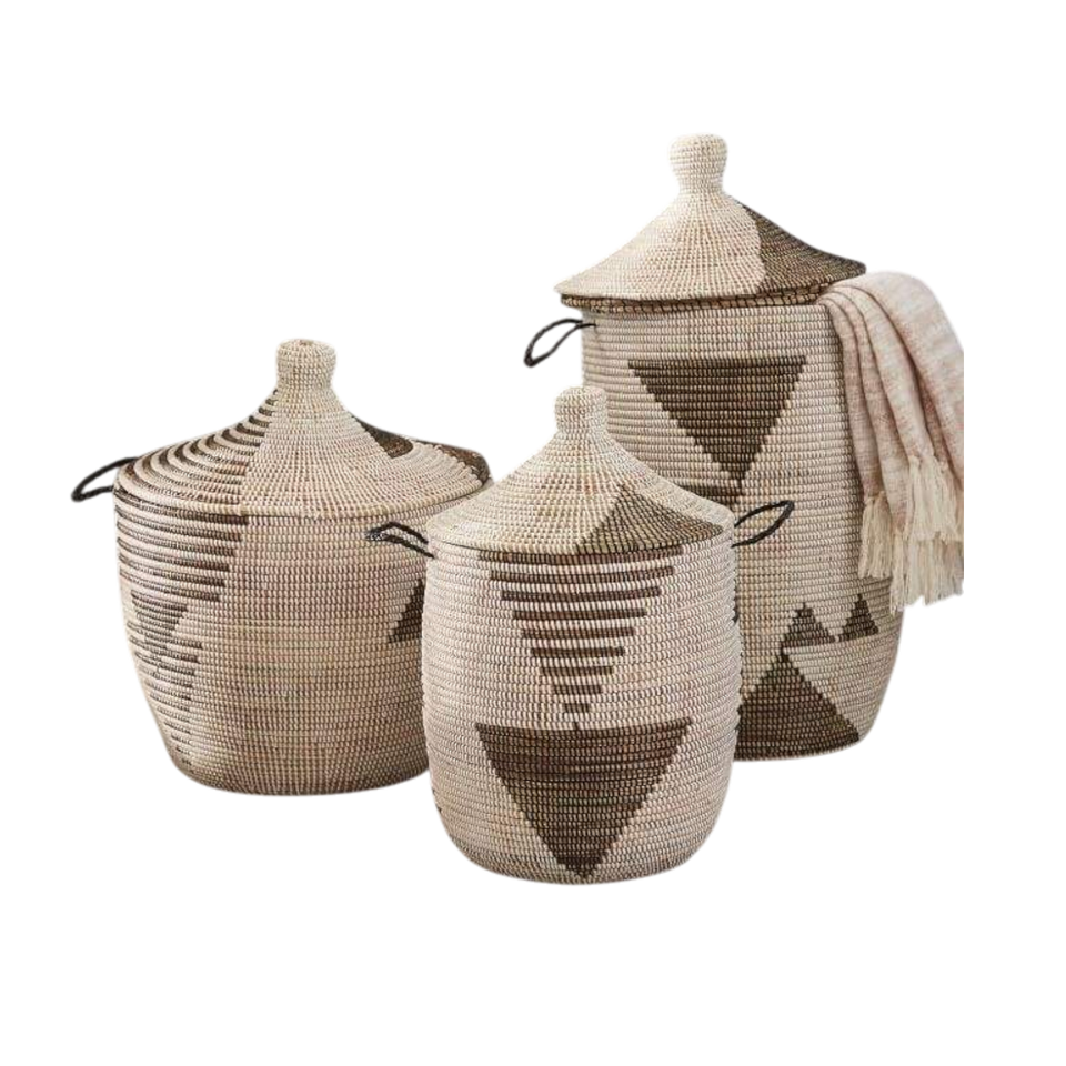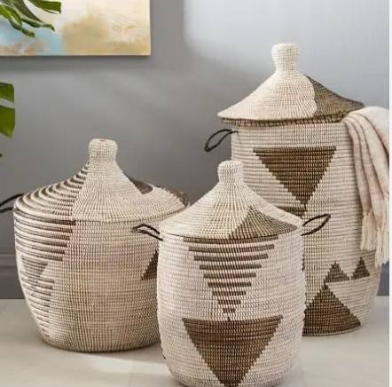 Product name:Seagrass Set of 3 Woven Storage Baskets Handles with Lid
