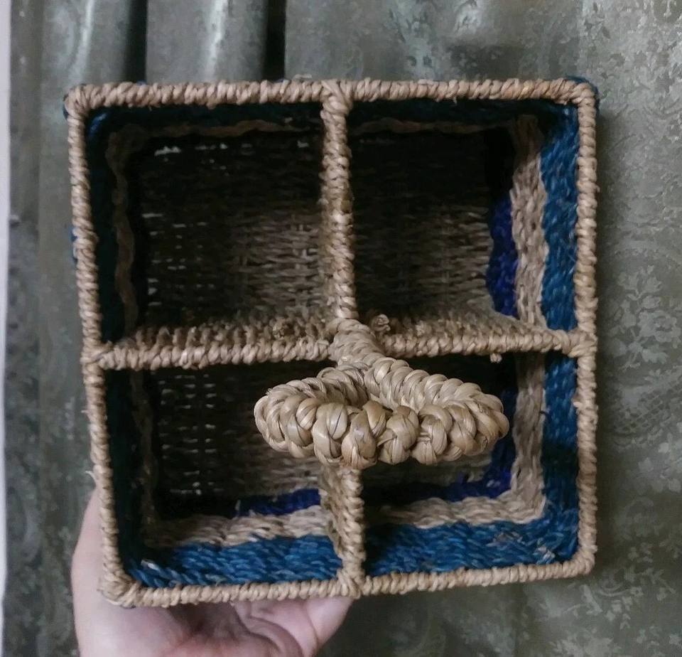 Porte-ustensiles de forme carrée en jonc de mer de haute qualité avec poignée Caddy d'ustensiles de couverts naturels pour la vaisselle de cuisine du Vietnam