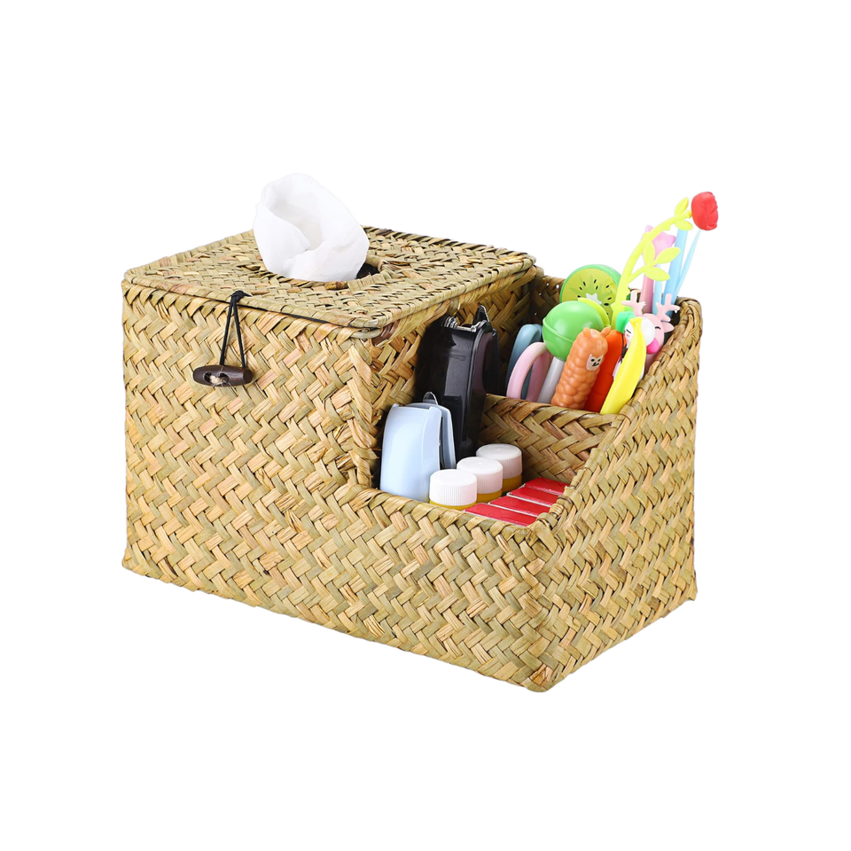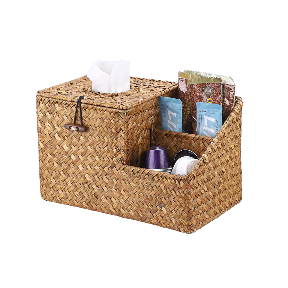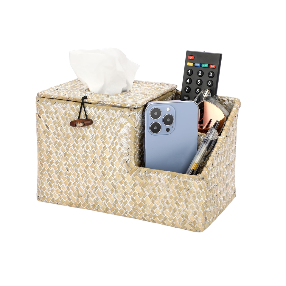 Boîte à mouchoirs en jonc de mer avec organiseur latéral