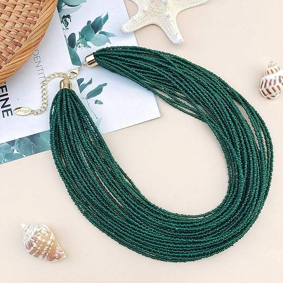 High Quality Peace Seed Beads Necklace for Women Statement Multi Layer Chunky Bib Collar Cluster Wedding Engagement Party Gift