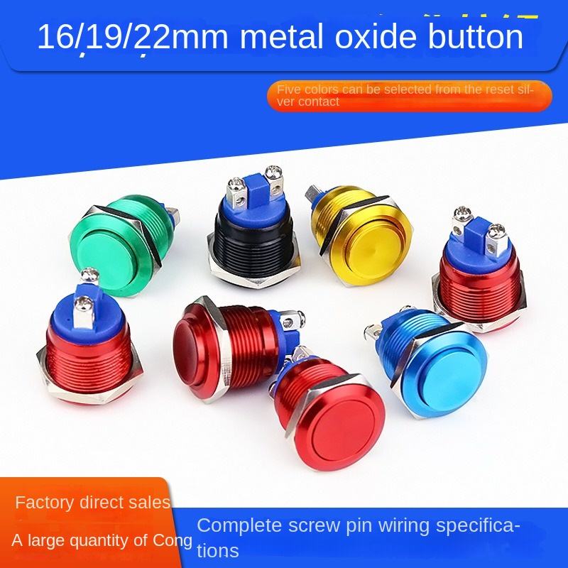 Momentary metal push buttonswitch:red, green, yellow, blue and black