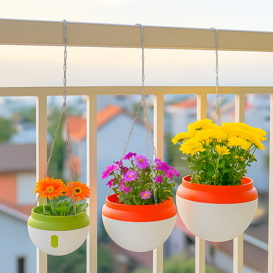Pot de fleurs suspendu auto-arrosant de haute qualité en plastique avec système de drainage, panier suspendu à chaîne pour la maison, grande taille