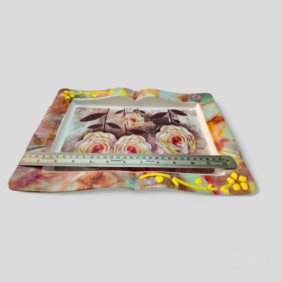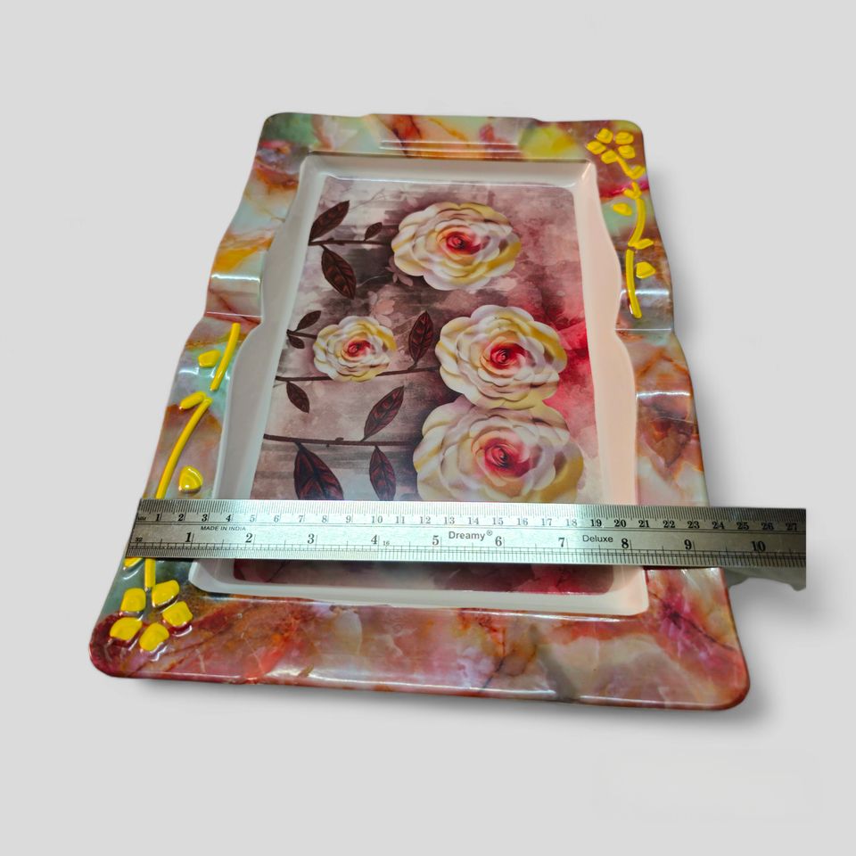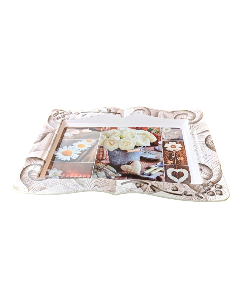Plateau de service de haute qualité Dernier design classique Motif de fleurs Décor de table Plateau en mélamine de haute qualité Prix bas