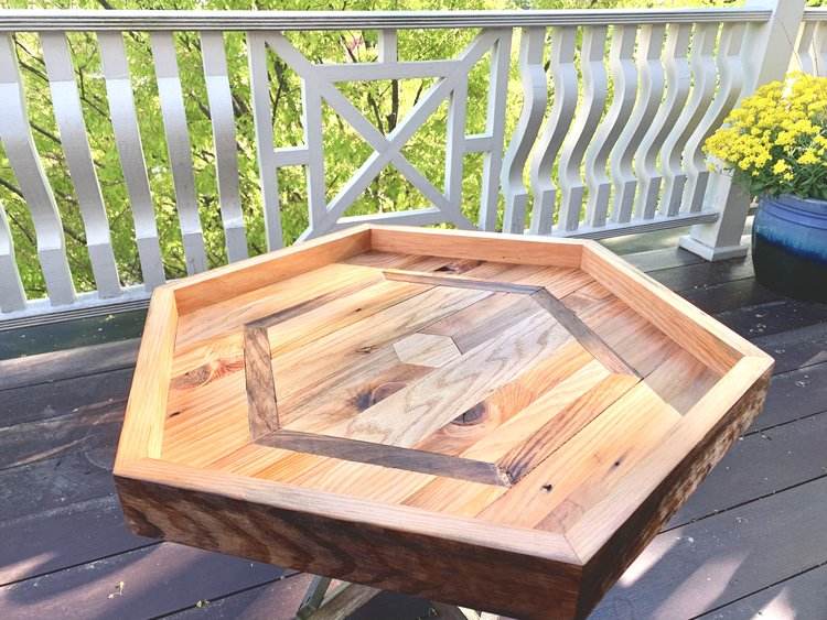 Ensemble de haute qualité 2 plateaux en bois lourds et grands en forme d'hexagone pour le service gastronomique et l'utilisation décorative au prix de gros