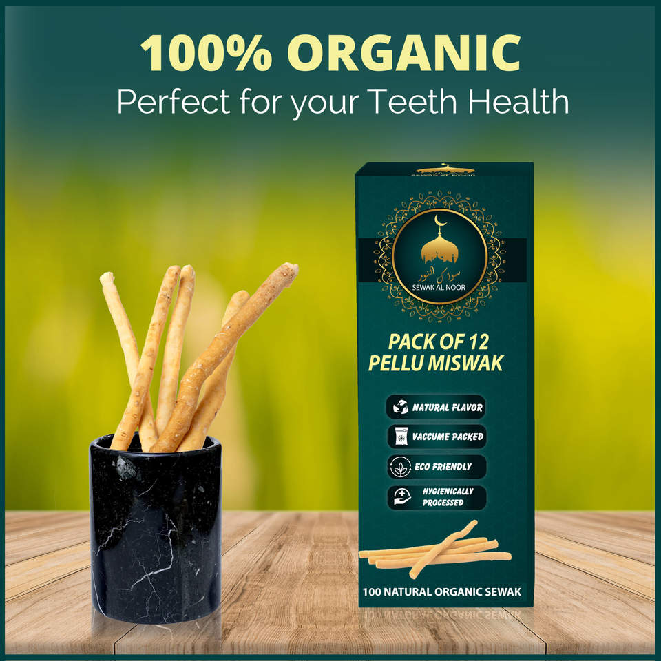 Les bâtonnets Sewak Noor Miswak de haute qualité sont 100% naturels et biodégradables, lot de 10