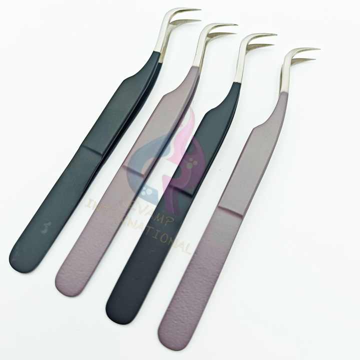 Pince à épiler professionnelle personnalisée avec logo, en acier inoxydable durable, pointe incurvée et aiguisée, pour l'isolation des cils.