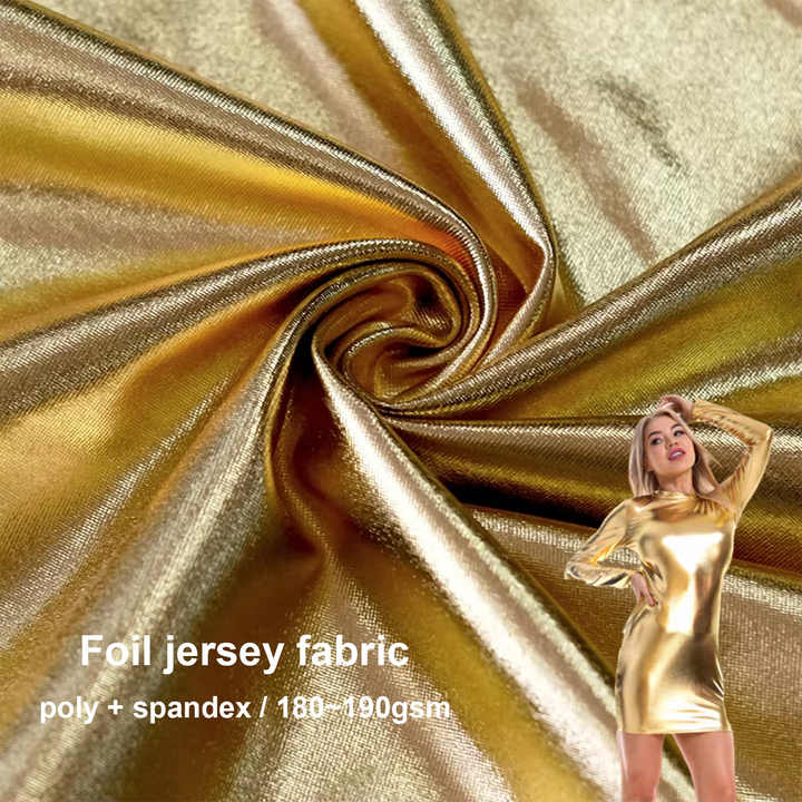 Tissu brillant de haute qualité boiteux Polyester Spandex or métallique Spandex feuille d'aluminium tissu pour robe spectacle vêtements