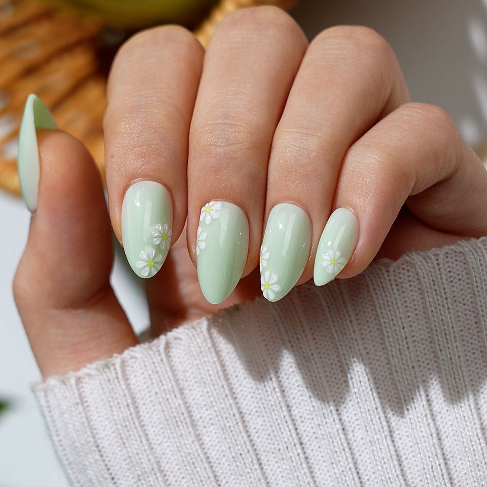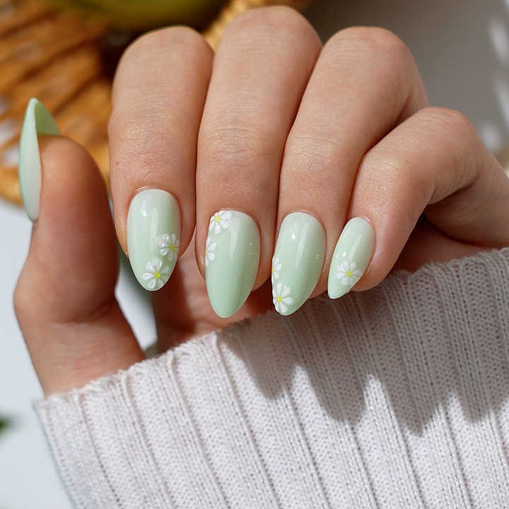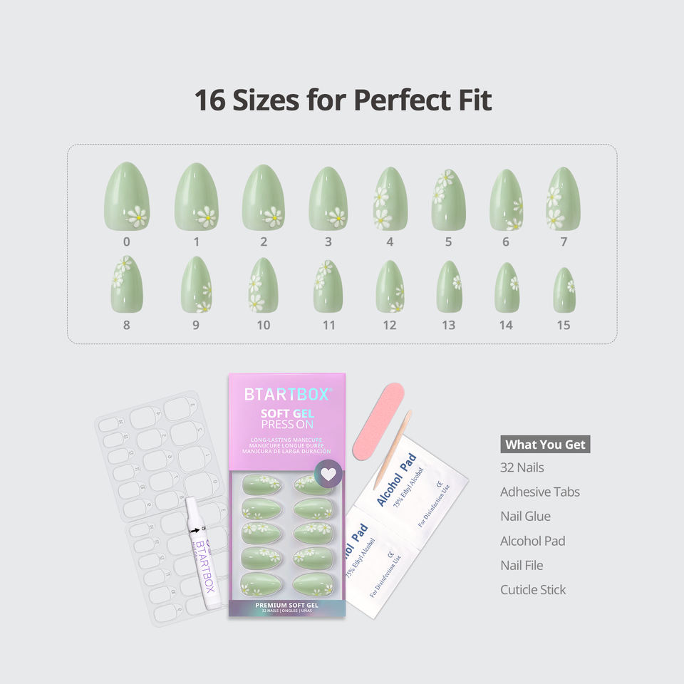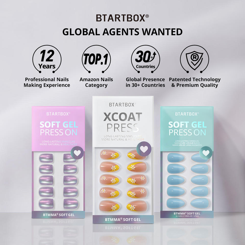 BTArtbox doux Gel XCOAT 3D Floral presse sur les ongles en gros court amande fait à la main bleu français pointe faux ongles