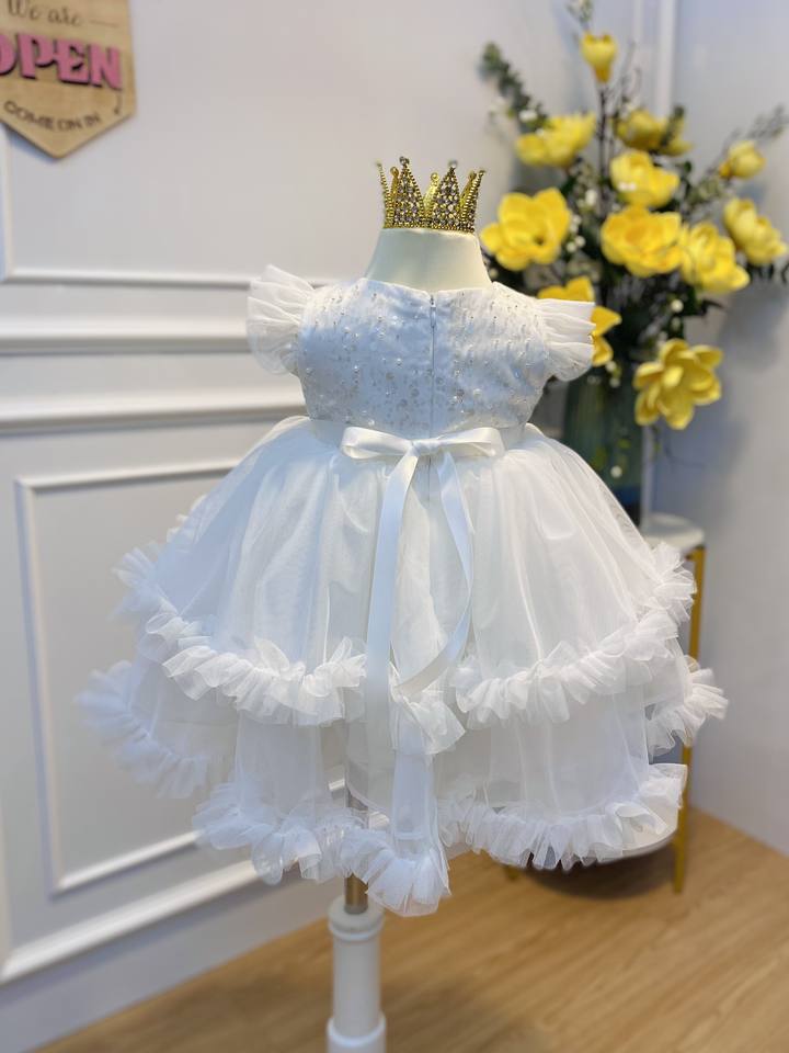 High Quality Short Sleeve 3D Multi-Layered Fabric Flower Girl Dress for Children Plus Size Halter Sequins ODM/OEM Supported for