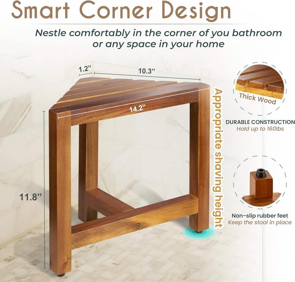 Tabouret de douche de haute qualité pour la jambe de rasage, repose-pieds en bois d'acacia, banc de salle de bain d'angle avec pieds antidérapants pour l'espace de douche