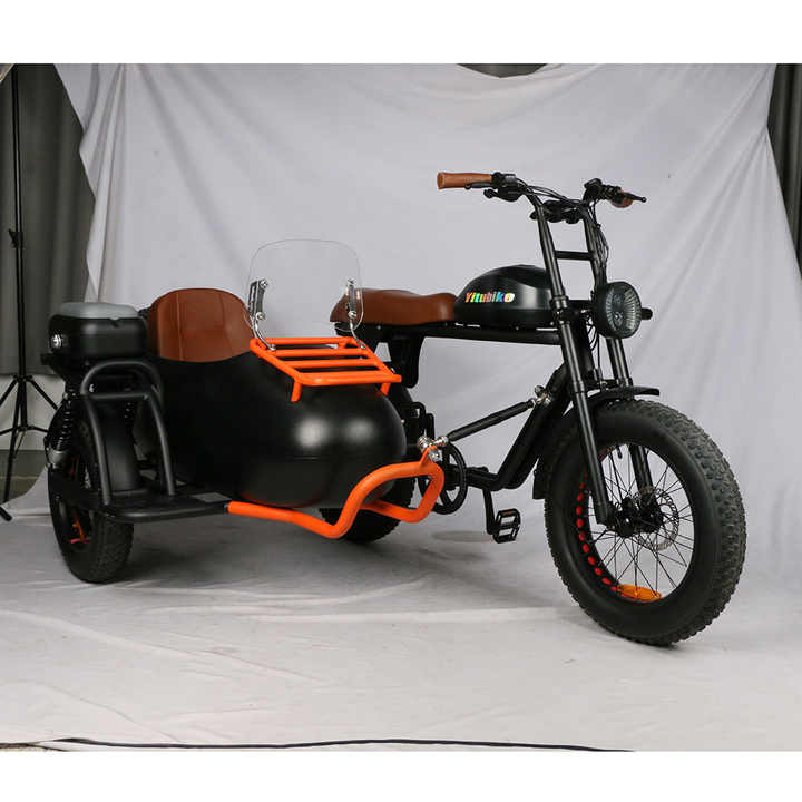 Haute qualité Side Car Pédale Assist Bike Sidecar pour transporter des animaux de compagnie et des enfants Tricycle à gros pneus électrique Dirt Bike 3 roues