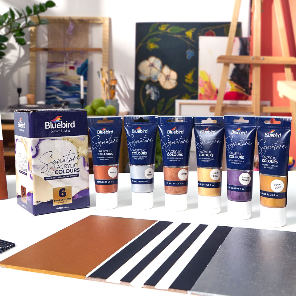 Ensemble de peinture acrylique métallisée Signature BLUEBIRD, couleurs nacrées, paquet de 6 2.5 oz chacun pour adultes et artistes professionnels
