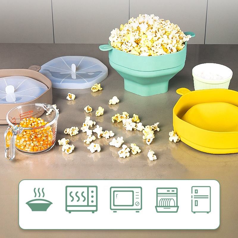 Haute qualité Silicone pliable cuisine outils faciles bricolage micro-ondes pop-corn Popper seau bol fabricant avec couvercle