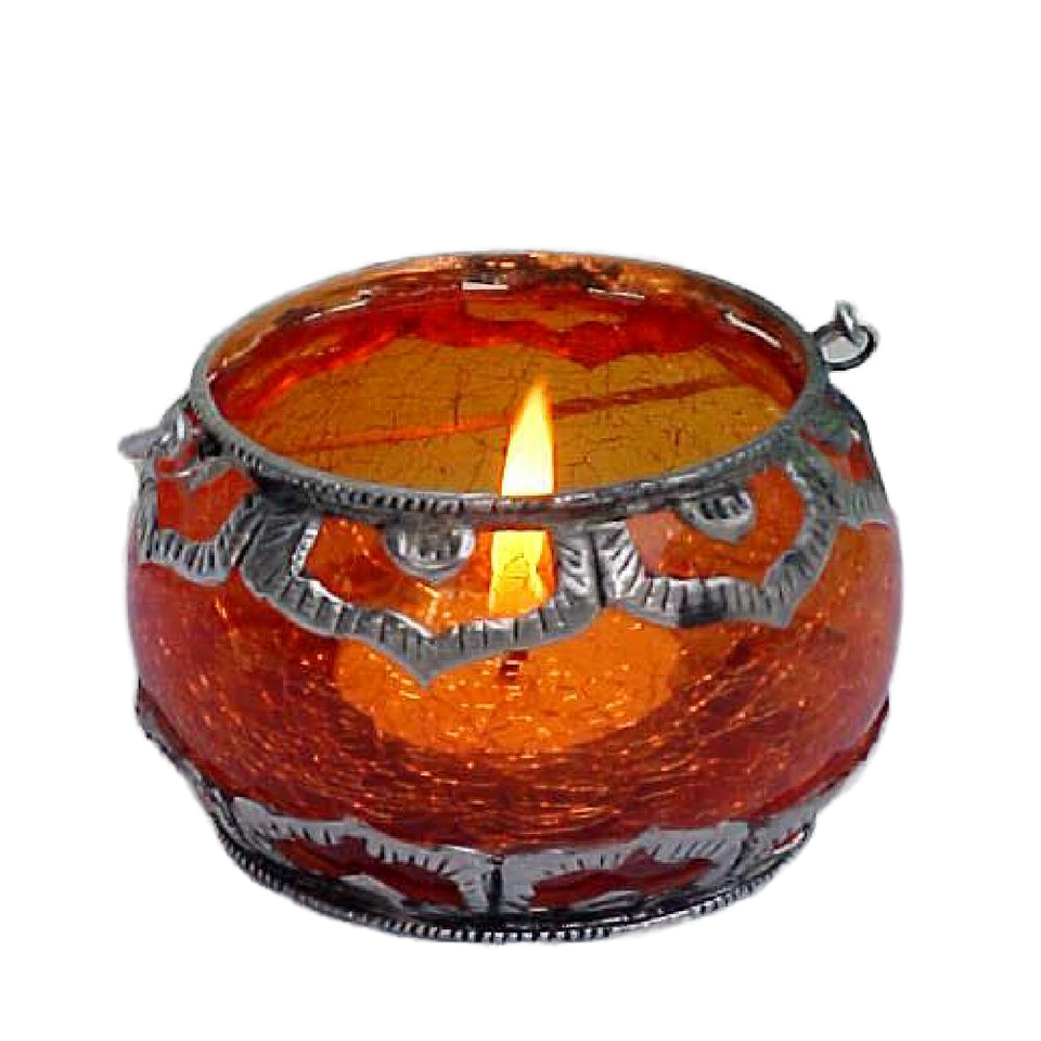 Support votif en verre Orange en laiton argenté de haute qualité fait à la main écologique pour les mariages et noël sérigraphié