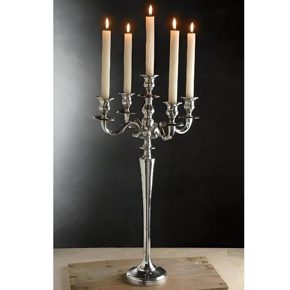 Candélabre à cinq bras en argent plaqué de haute qualité, décoré, en métal, pour la décoration de la maison, des mariages et de Noël