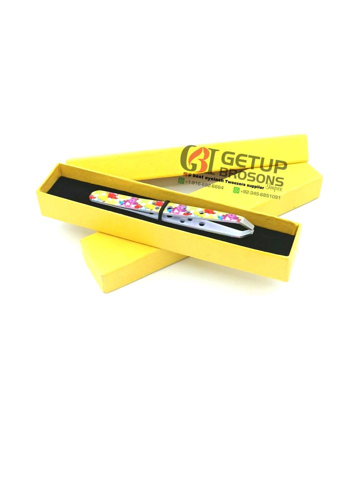 Haute qualité argent pointe fleur papier revêtement Extensions de sourcils pince à épiler nouveau Design personnalisable Logo outils de beauté