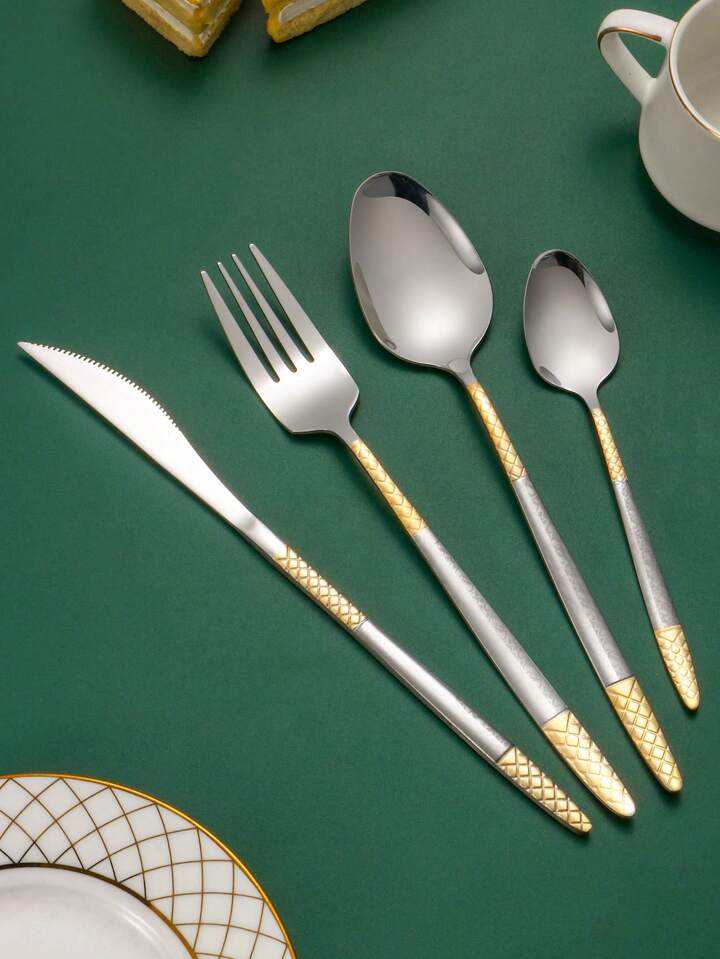 Haute Qualité Argenterie 4 Pièces Dîner Couteau Fourchette Cuillère Miroir Acier Poli Couverts En Acier Inoxydable Couverts Ensemble Inde