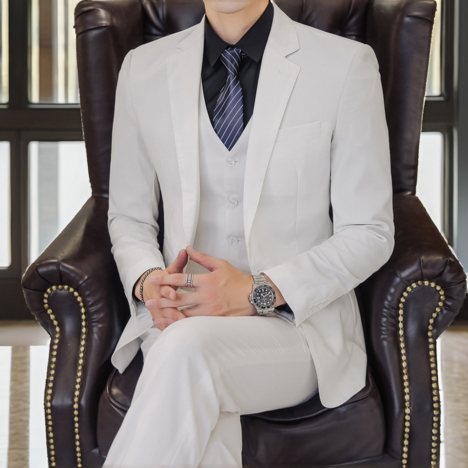 Costume de mariage blanc pour homme de haute qualité, simple boutonnage, 3 pièces (Blazer + Pantalon + Gilet), coupe ajustée, respirant, grandes tailles, pour affaires