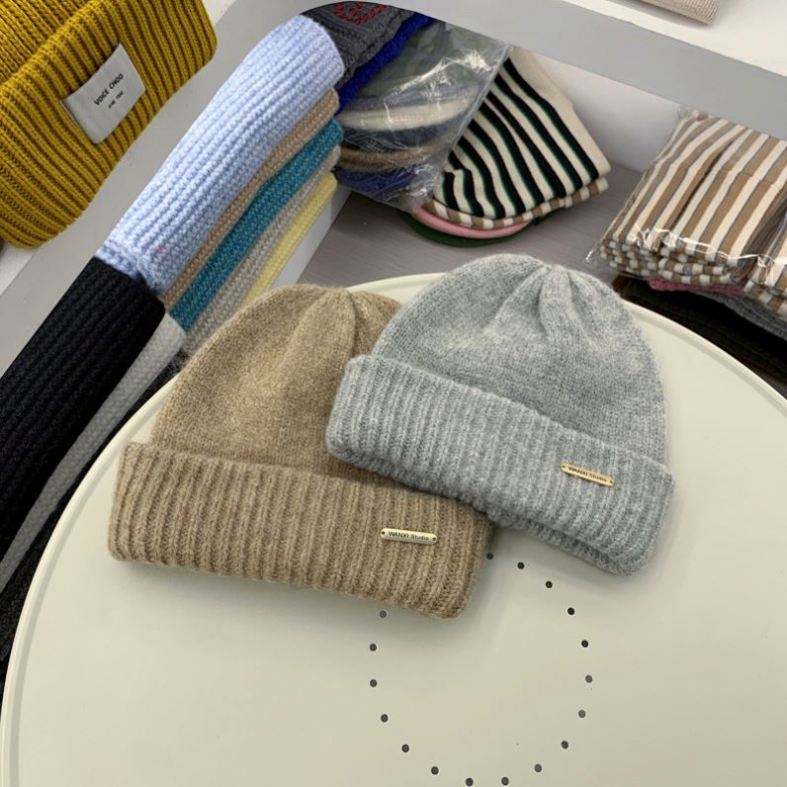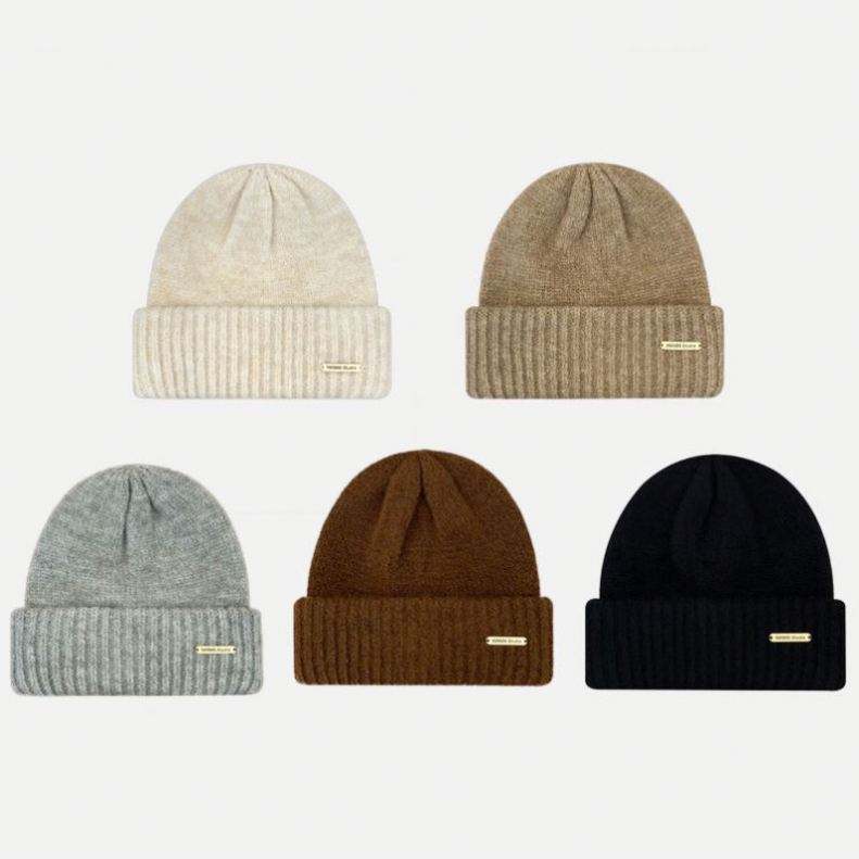 Article:Bonnet en cachemire tricoté, bonnet personnalisé en mélange de laine avec logo en métal