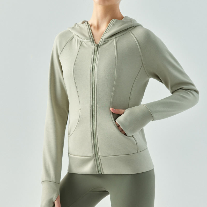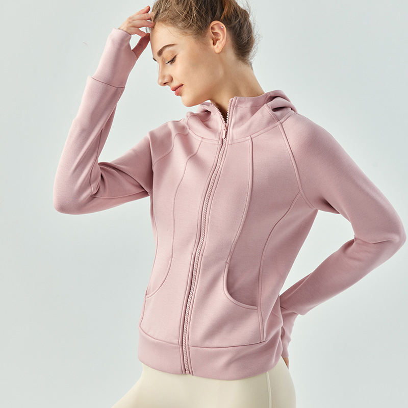 Veste de sport coupe ajustée de haute qualité pour femmes fermeture éclair coupe-vent sport Fitness à capuche manches longues respirant poche supérieure grande taille