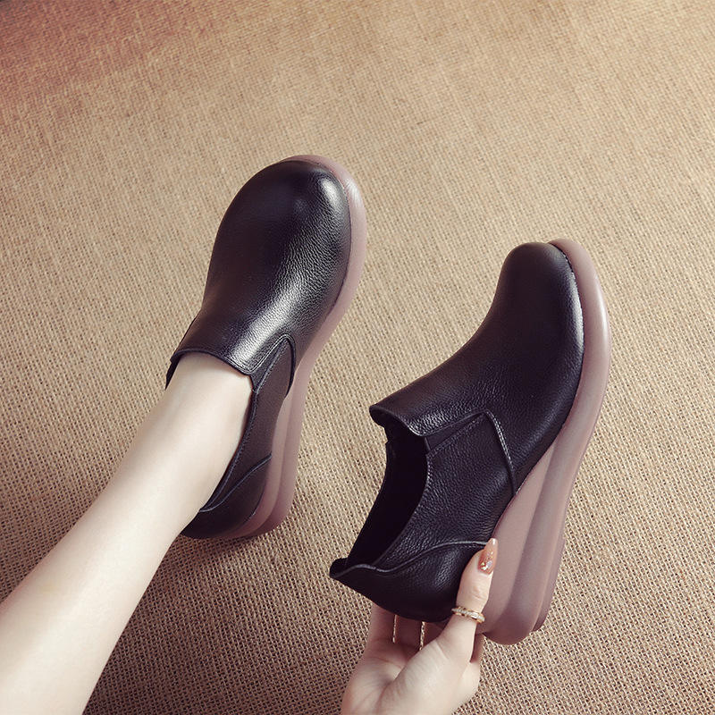 Chaussures compensées noires à enfiler de haute qualité, en cuir PU souple, plateforme, chaussures pour femmes, décontractées, bout rond, imperméables, style marche