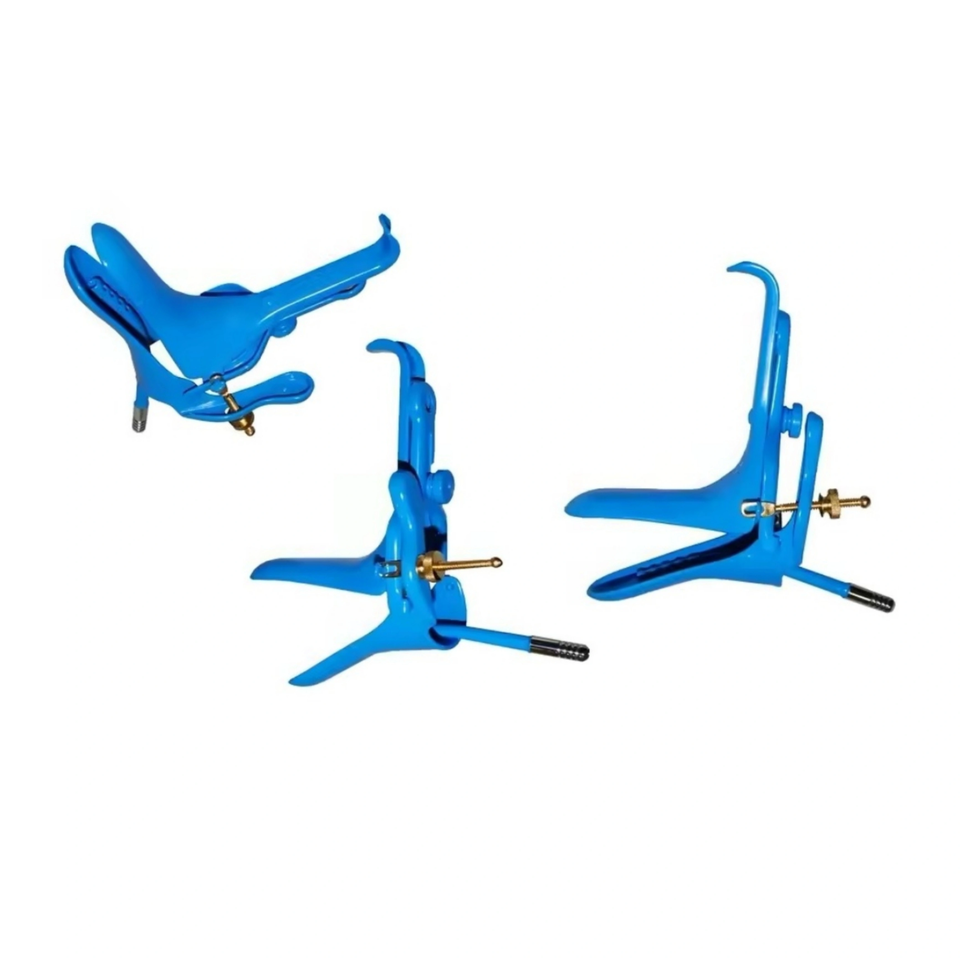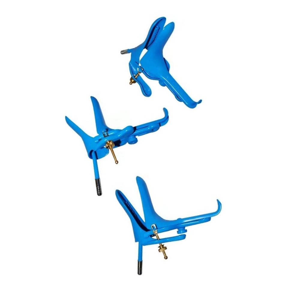 Speculum vaginal manuel en acier de haute qualité, petit format, bleu, avec revêtement, pour diathermie, modèle Cusco Graves, avec aspiration de fumée | OMI