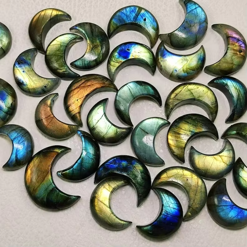 Haute qualité lisse poli Labradorite Cabochon Agate pierre précieuse forme de croissant de lune pour la fabrication de bijoux pierres précieuses en vrac