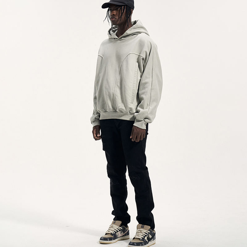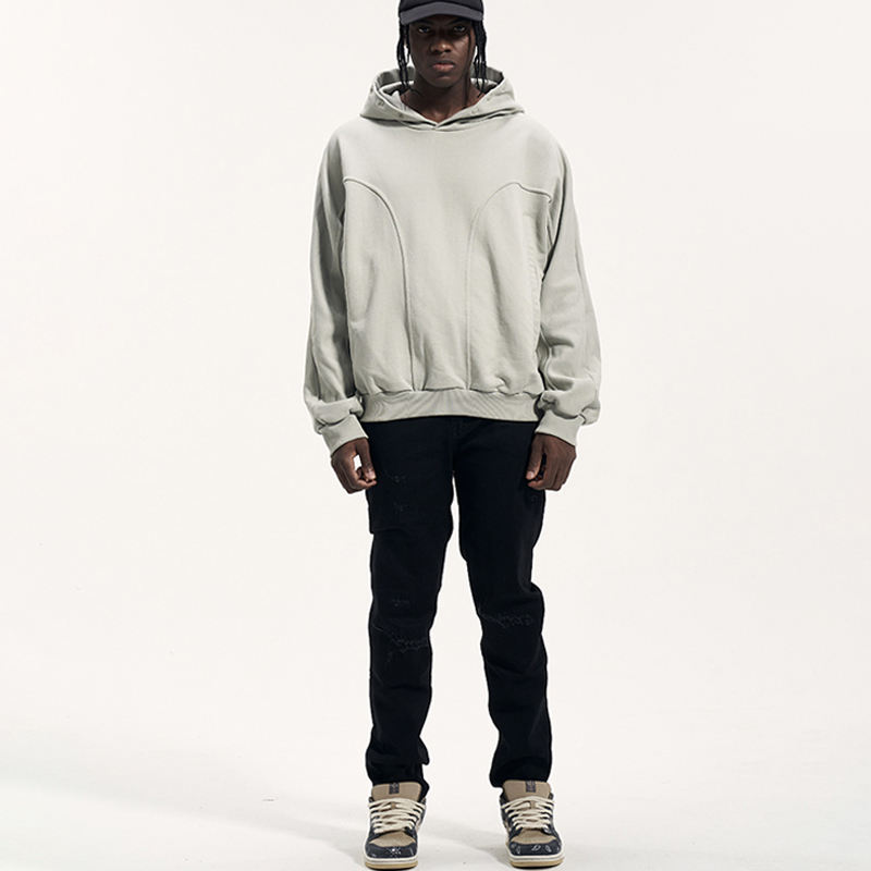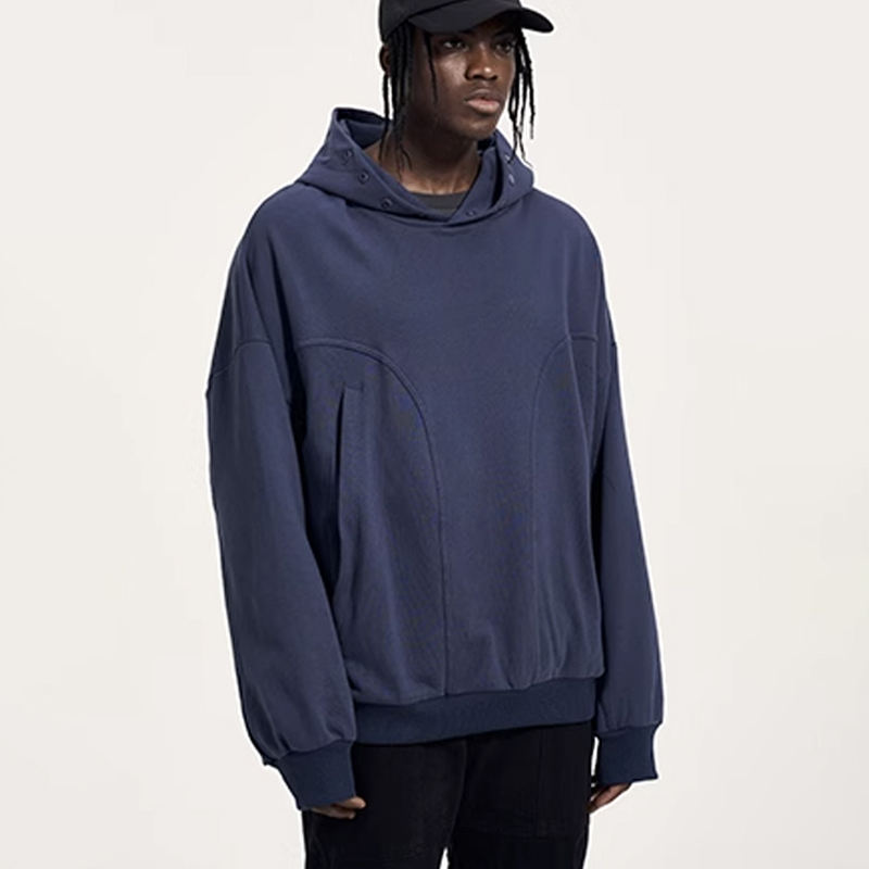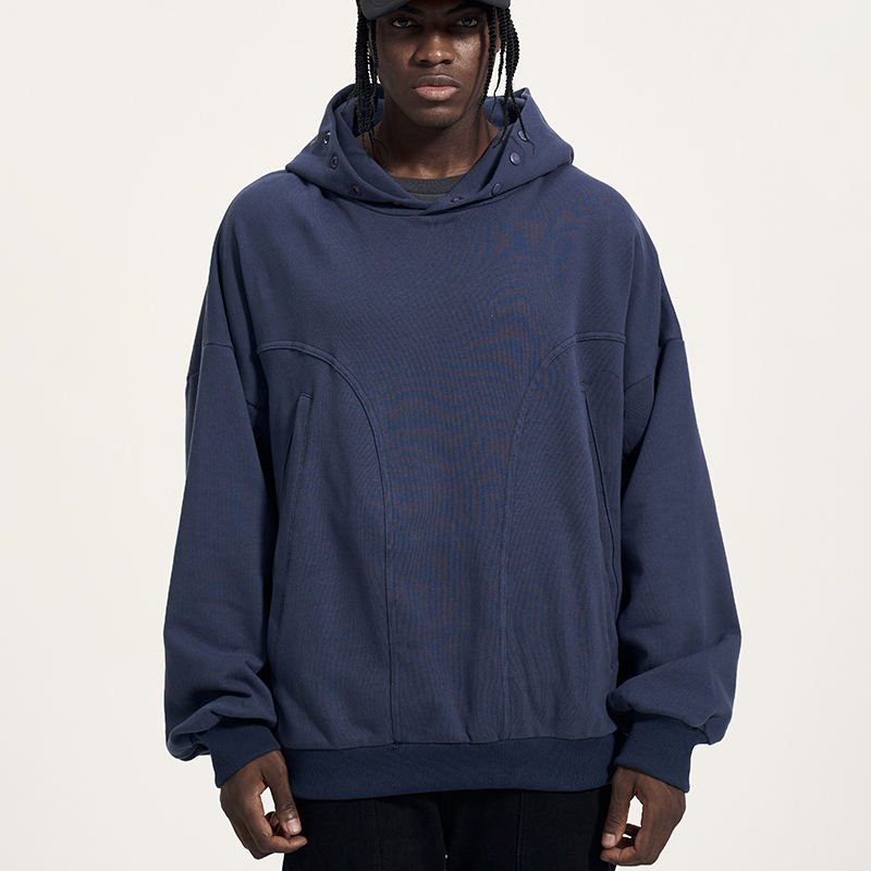 Sweat-shirts pour hommes en molleton français pré-rétréci de haute qualité avec col à boutons pression, 420 g, 100 % coton, avec poches latérales