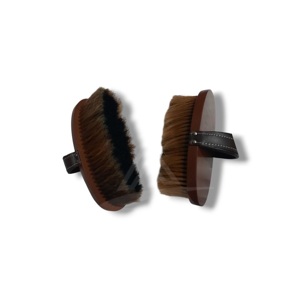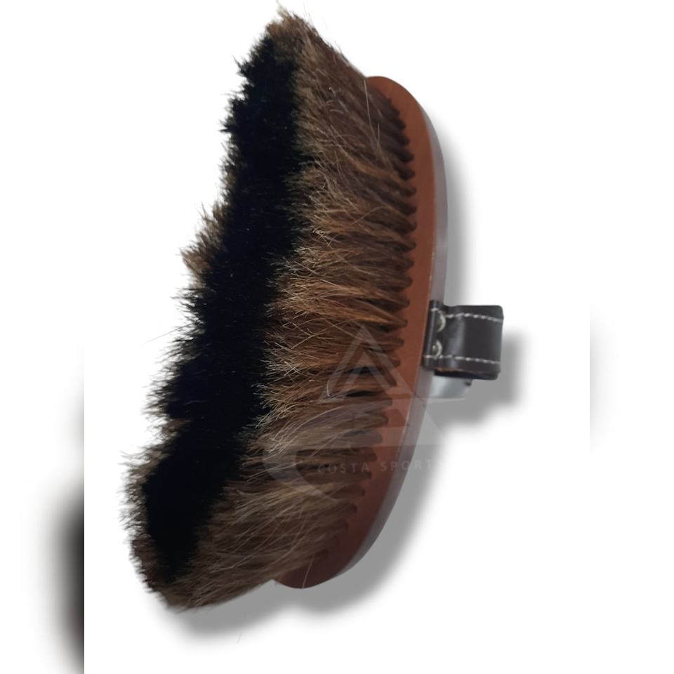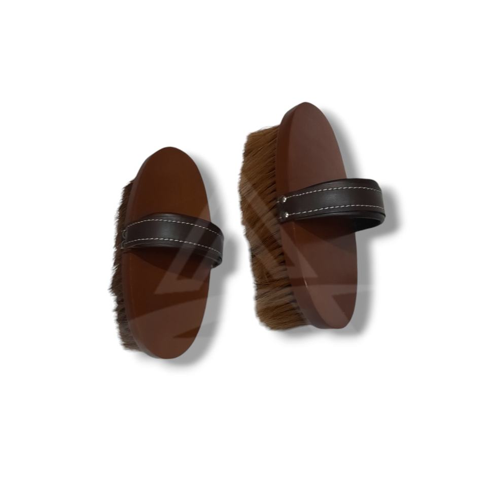 Brosse de nettoyage de visage et de corps de cheval doux de haute qualité en bois avec de longs poils produit de soin de cheval de sangle en cuir de 5cm