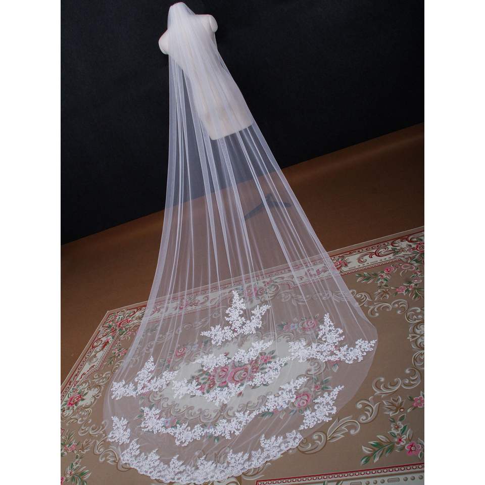 Voile de fuite en os de voiture de trois mètres de fil de maille douce de haute qualité avec peigne en métal monocouche Plus pour voiles de mariée