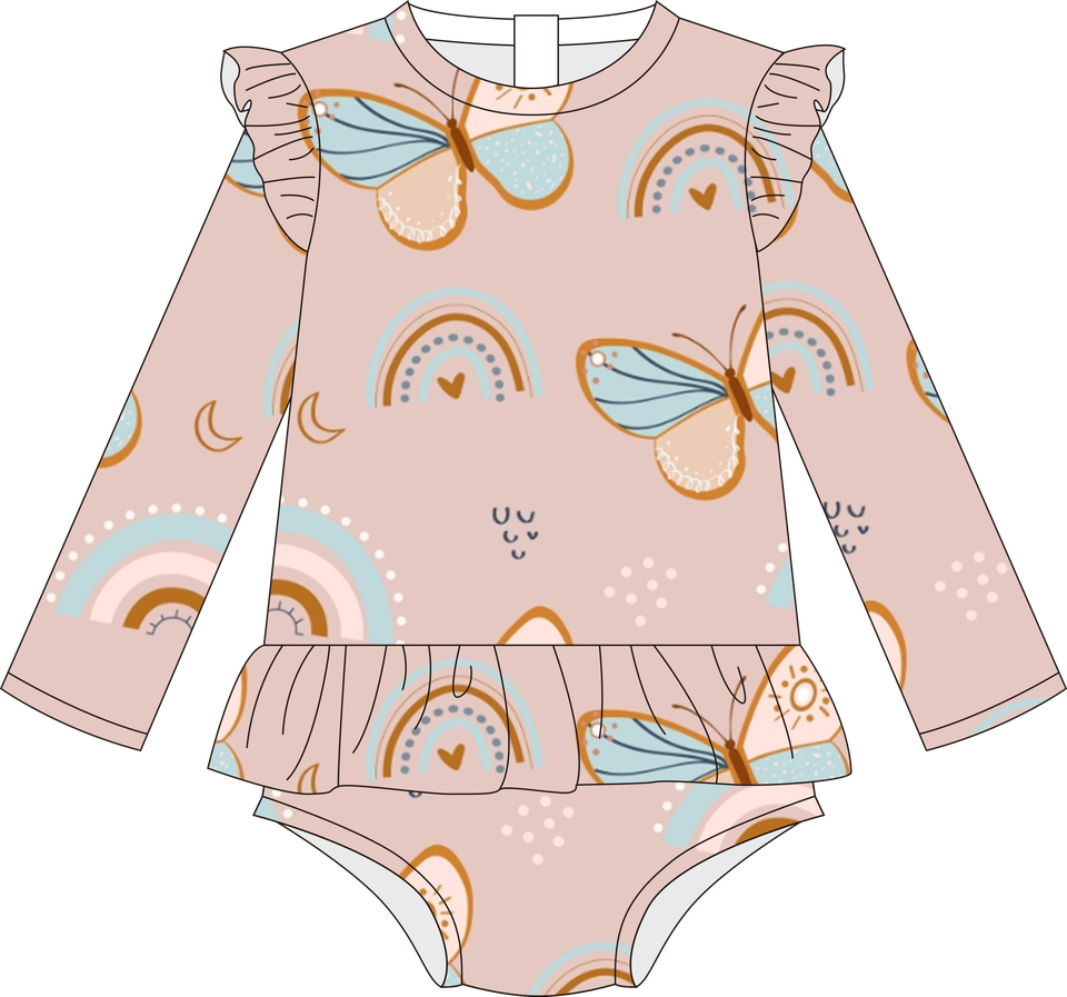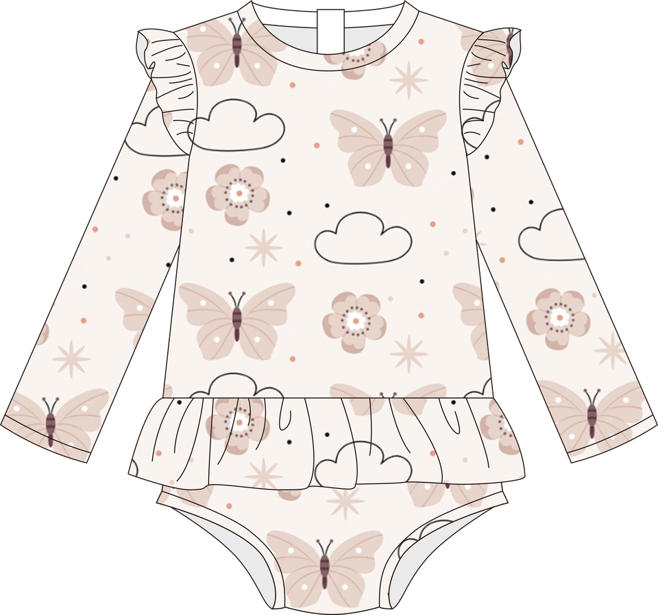 Maillot de bain pour bébé fille de haute qualité, doux, à séchage rapide, avec un adorable imprimé papillon, protection solaire pour l'été