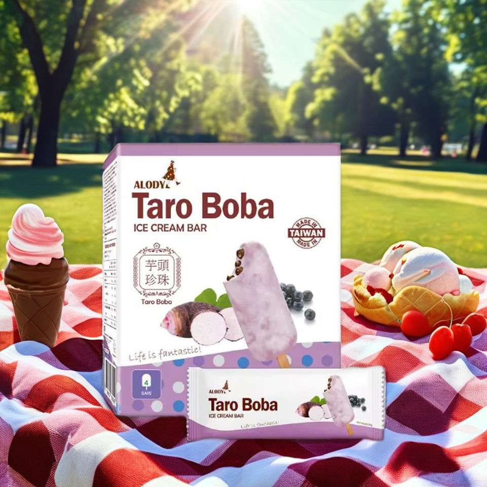 Barre de crème glacée Taro molle de haute qualité avec goût en couches emballée dans une boîte