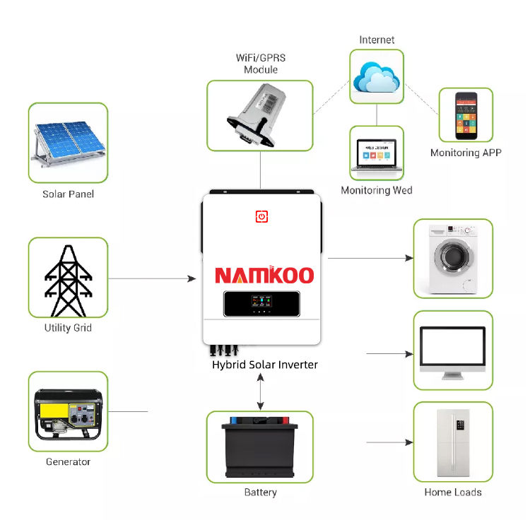 Onduleur solaire de haute qualité onde sinusoïdale pure 7KW 8KW 10KW RCB lumières système d'alimentation solaire onde sinusoïdale pure hybride Inverte