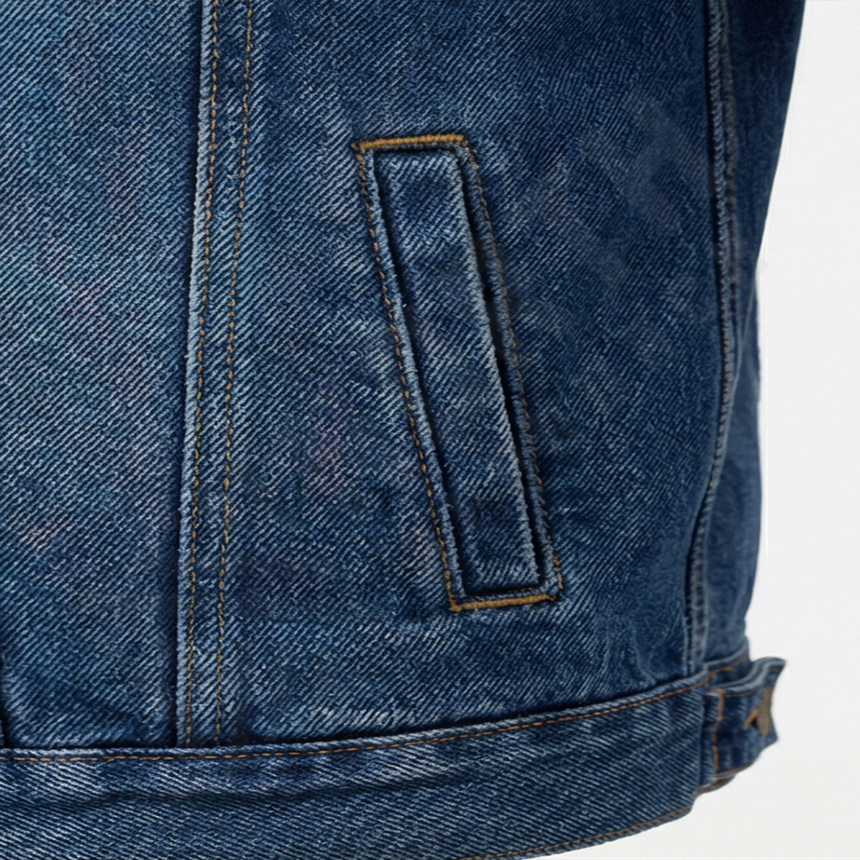 Veste en jean pour homme de haute qualité, couleur bleu uni, personnalisable, tissu respirant, poches latérales, coupe ajustée