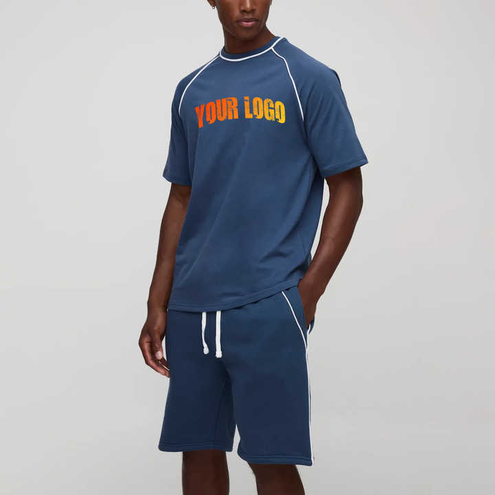 Ensemble 2 pièces d'été décontracté de haute qualité, t-shirt oversize respirant à épaules tombantes et short, avec logo brodé personnalisé