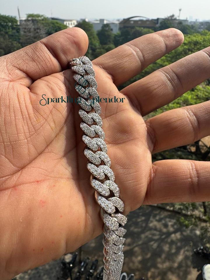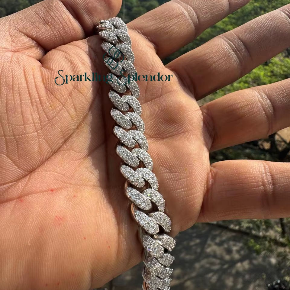 Bracelet chaîne à maillons glacés en argent 925 plaqué or, moissanite VVS, style hip-hop cubain, 13 mm, haute qualité, pour tiers