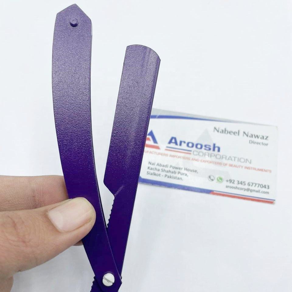 Haute qualité solide en acier inoxydable bleu couleur manuel professionnel barbier rasoir droit en gros durable