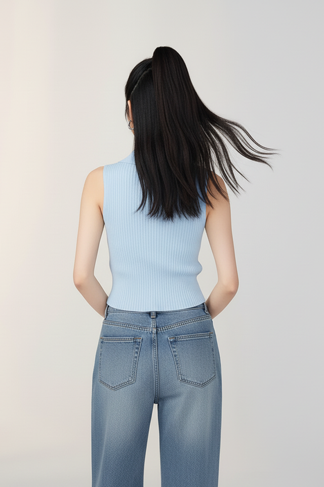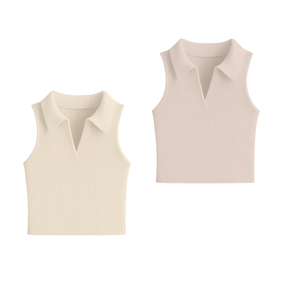 Numéro de Type:RIBBED KNIT CROP POLO TANK